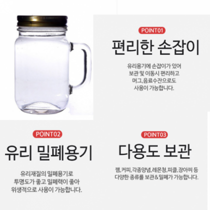 아트웨어)사각 손잡이 쨈병-500ML