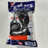 대한)W 접지 일반형 2구 2.5M (블랙)멀티탭