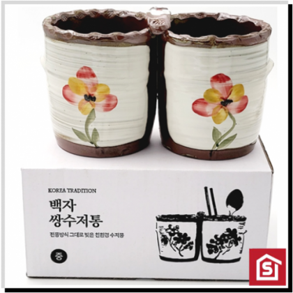 아트웨어)백자 쌍수저통 [중]